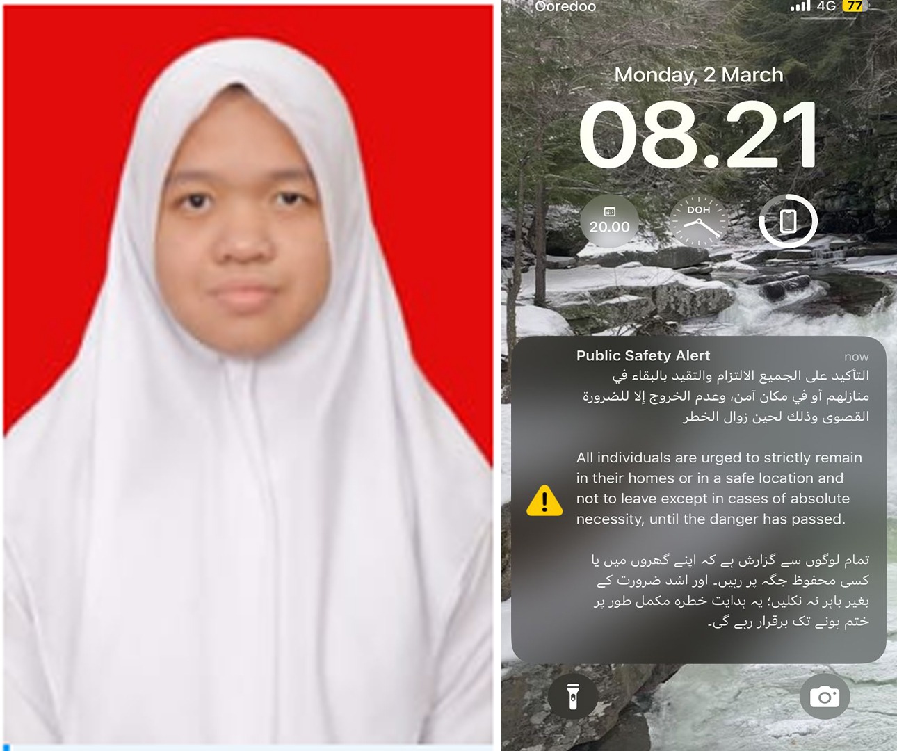 Setiap hari, Hani dan keluarganya menerima peringatan darurat di ponsel ketika ada potensi rudal yang melintas dari arah Iran. Notifikasi itu muncul tiba-tiba, memerintahkan warga untuk waspada dan tetap berada di dalam rumah. “Mencekam, Pak. Setiap hari ada warning di HP ketika ada bahaya atau missiles Iran datang,” ungkapnya, sembari mengirim foto layar ponselnya setelah mendapat warning dari pemerintah Qatar.