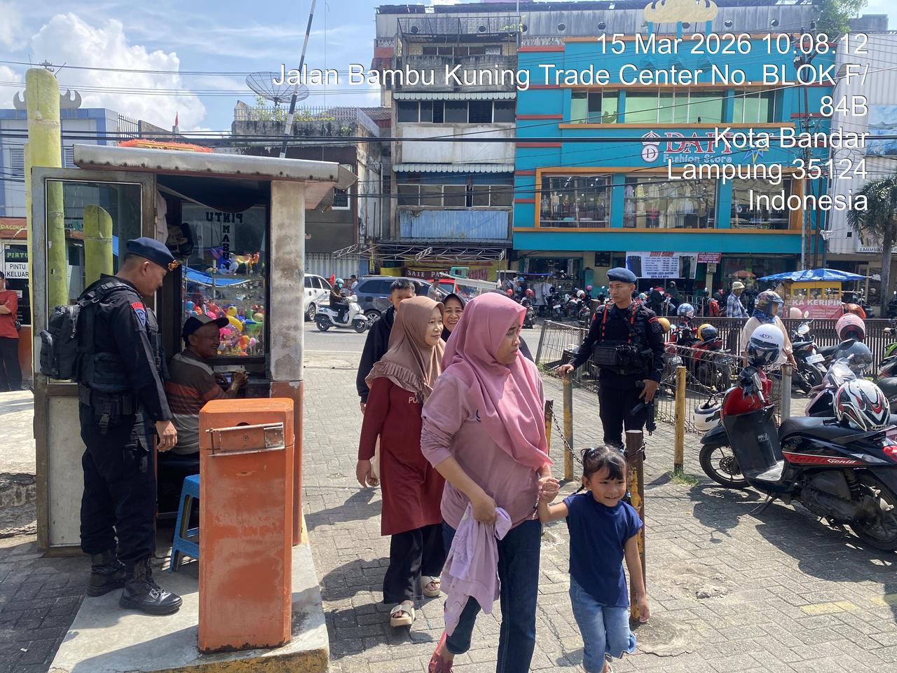 Patroli dialogis dilaksanakan di beberapa lokasi strategis yang menjadi titik keramaian masyarakat, yakni Pasar Bambu Kuning, Mall Boemi Kedaton, serta Pos Pengamanan Ramayana. Dalam kegiatan tersebut, personel Brimob melakukan pemantauan situasi keamanan, memberikan imbauan kamtibmas kepada masyarakat, serta berdialog langsung dengan pedagang dan pengunjung untuk memastikan situasi tetap aman dan kondusif.