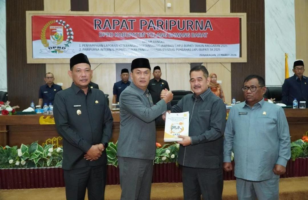 TUBABA — Dewan Perwakilan Rakyat Daerah Kabupaten Tulang Bawang Barat (DPRD-TUBABA) Gelar Rapat Paripurna penyampaian Laporan Keterangan Pertanggung Jawaban (LKPJ) Tahun Anggaran 2025. Senin, 13 April 2026.